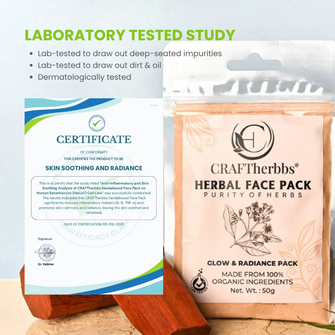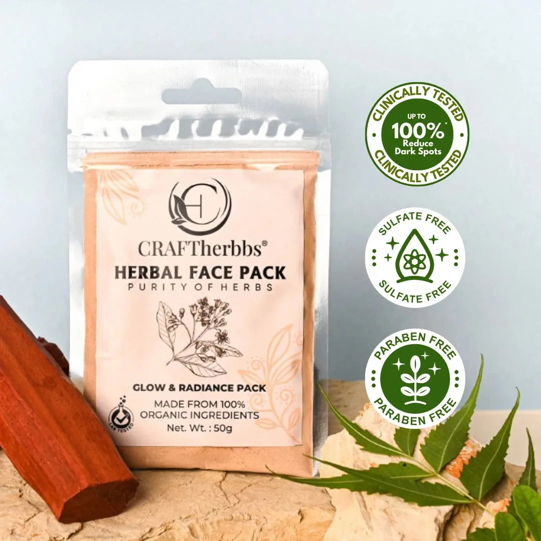 Craftherbbs Herbal Glow and Radiance Face Pack is a 100% natural skincare solution designed to rejuvenate and brighten your complexion. Enriched with a unique blend of herbal ingredients, this face pack deeply cleanses, reduces blemishes, and enhances your skin's natural glow. Free from parabens, harsh chemicals, and artificial additives, it is suitable for all skin types, including sensitive skin. Pamper your skin with this nourishing formula that promotes hydration, evens skin tone, and leaves your face feeling soft, smooth, and radiant. Choose Craftherbbs Glow and Radiance Face Pack for a herbal touch to your skincare routine.