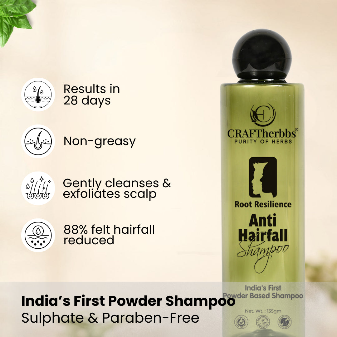 Experience the power of nature with Root Resilience Anti-Hair Fall Shampoo, specially crafted to combat hair fall and promote stronger, healthier hair. Enriched with natural ingredients and herbal extracts, this shampoo strengthens hair from root to tip, reducing breakage and thinning effectively.